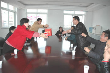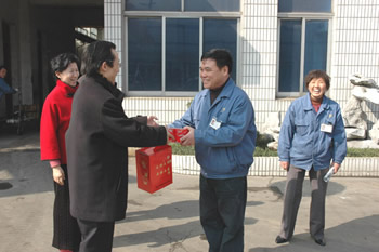 2007年春節(jié)剛過,公司領(lǐng)導班子深入各投資企業(yè)開展慰問活動。正要出發(fā),市經(jīng)貿(mào)委主任蔡惠中一行上門慰問