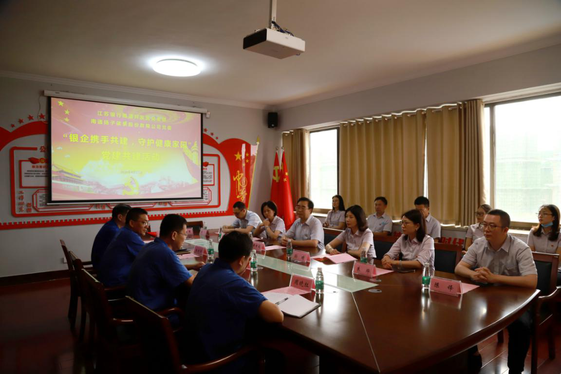 為豐富黨建形式,提高黨建工作水平,延伸工作平臺,8月27日,江蘇銀行南通分行黨委委員、副行長黃世成率江蘇銀行南通開發(fā)區(qū)黨支部與南通揚子碳素股份有限公司黨委開展“銀企攜手共建,守護健康家園”黨建共建活動。揚子碳素黨委書記、董事長劉明、黨委委員、副總經(jīng)理、財務(wù)總監(jiān)王建華、黨委委員、副總經(jīng)理、工會主席周曉紅、黨委委員、紀(jì)委書記陸輝以及各黨支部書記參加此次活動。