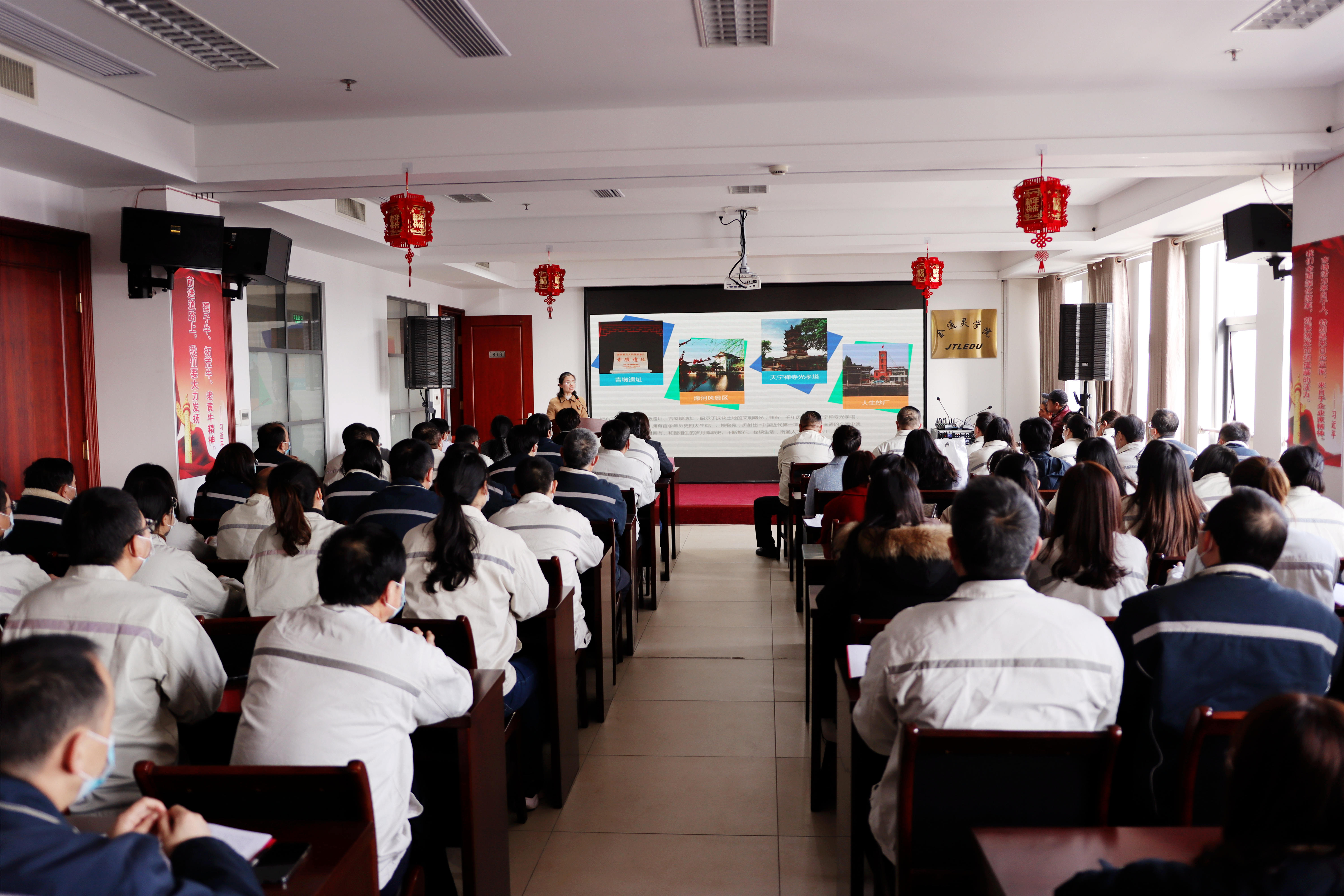 紅色的燈籠帶著節(jié)日的余溫與暖心的“習語金句”一起裝點著會場的氛圍,臺上宣講員循循善誘,為金通靈職工帶來滿滿理論“干貨”;臺下聽眾聚精會神,給宣講員們送去陣陣掌聲。2月23日下午,崇川區(qū)“學習貫徹習近平總書記視察江蘇重要講話精神”宣講團首場宣講活動在金通靈學院內(nèi)成功舉辦。